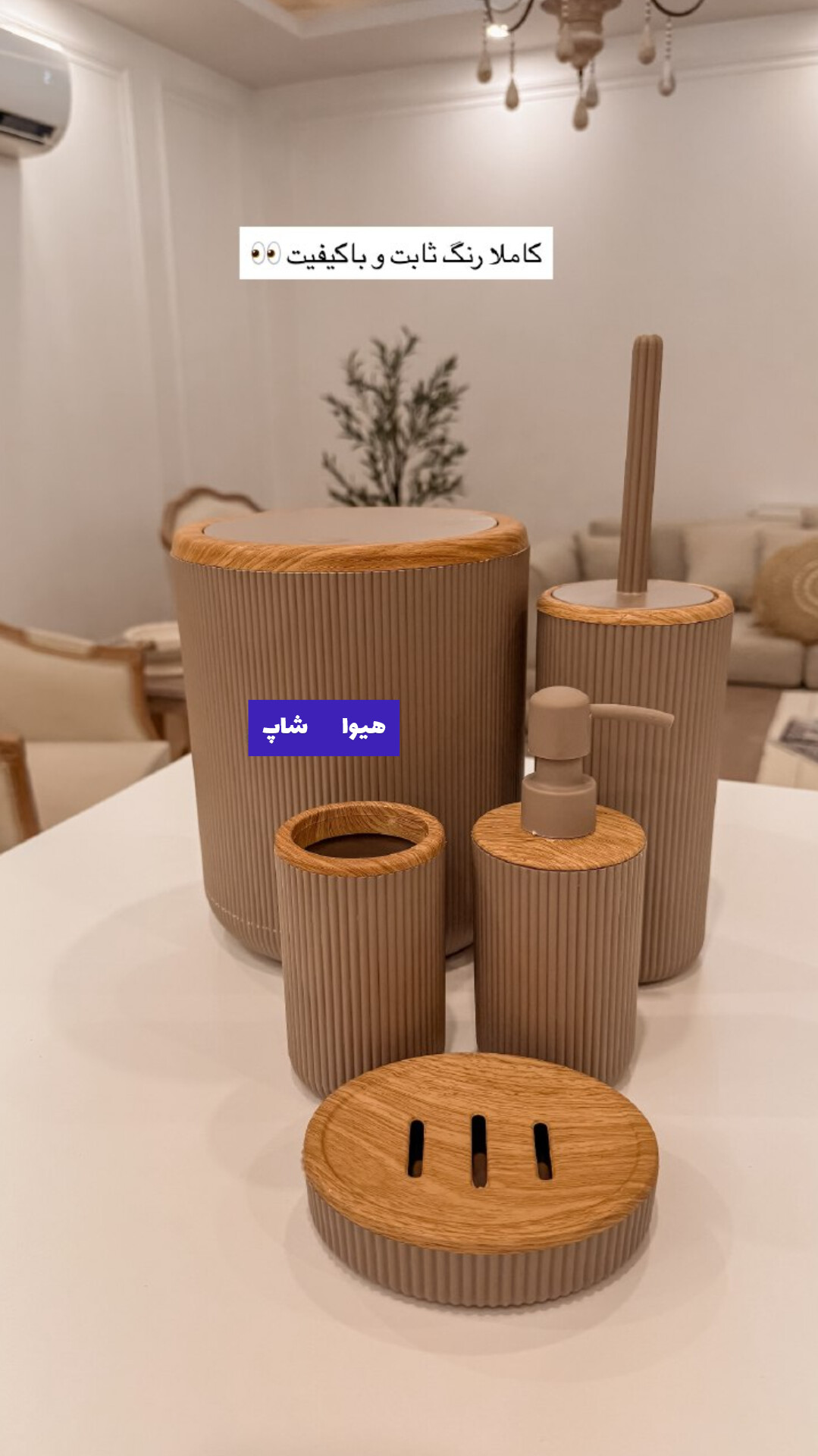 ست بهداشتی ۵ پارچه پلاستیکی طرح چوب